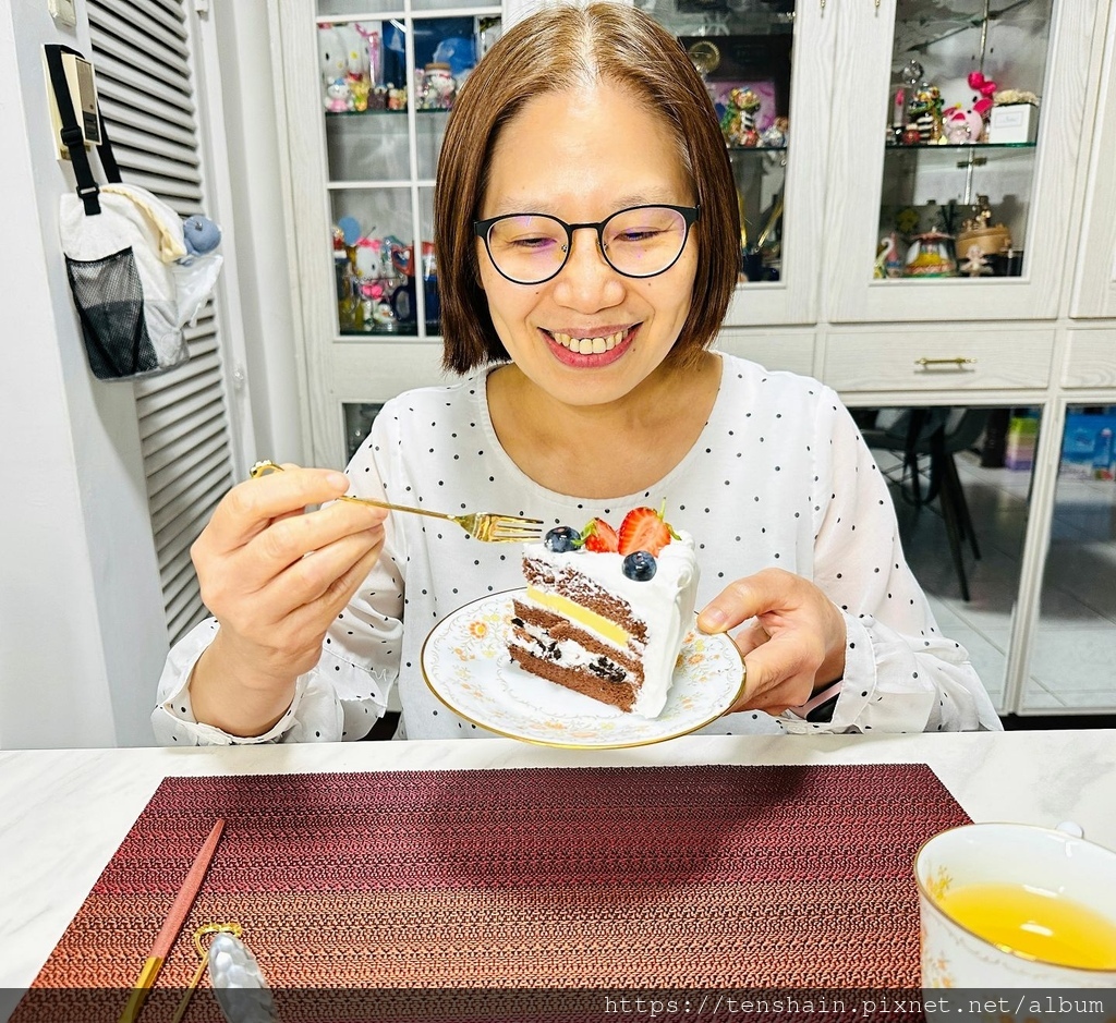 蛋糕造型好不好看很重要,但是好不好吃更重要,畢竟蛋糕是做來吃,不是做來看的。前面提過,我買給女兒的那個史迪奇(Stitch)造型蛋糕,就是中看不中吃,那麼這個「愛維爾手感烘焙」的母親節蛋糕到底好不好吃呢?老婆開心的表情,已經給出答案。
