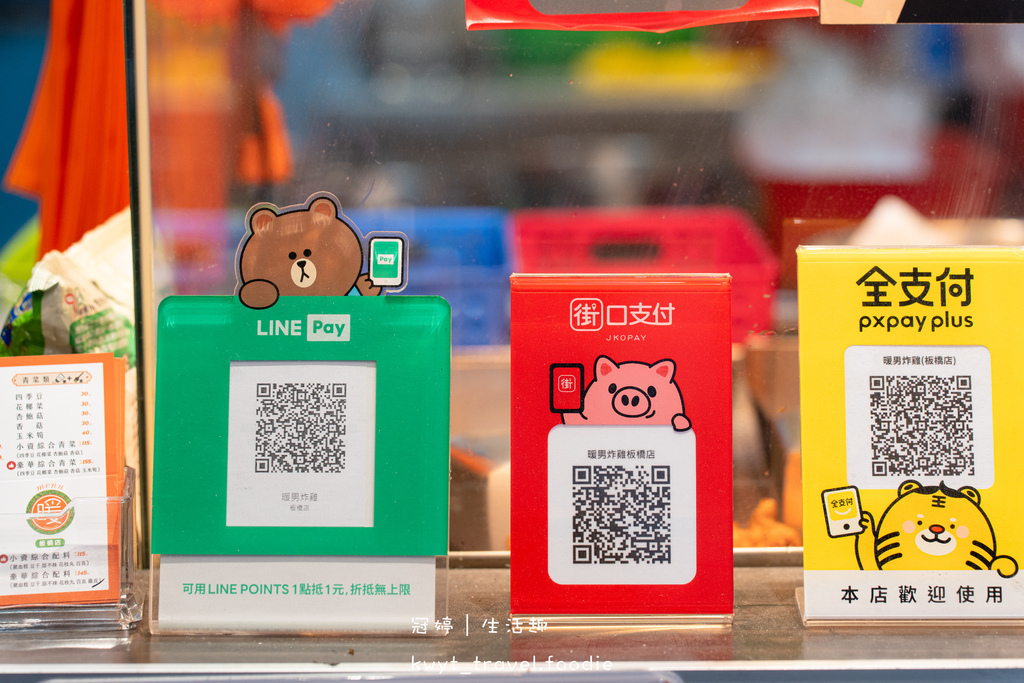在暖男炸雞板橋店消費,可使用:現金、LinePay、街口支付、全支付等多元支付方式付款。
