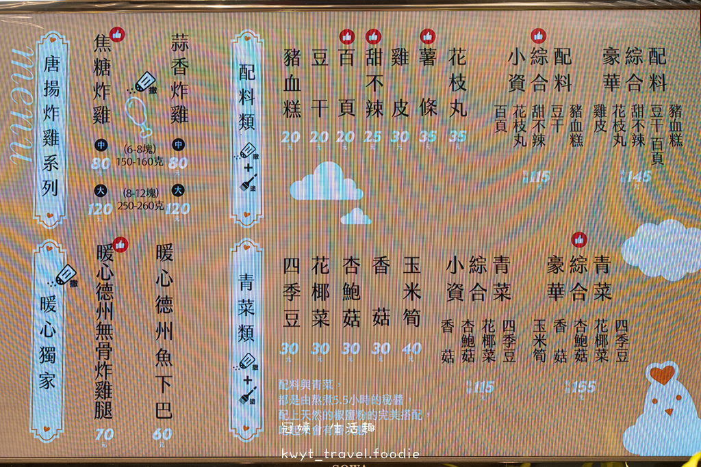 暖男炸雞板橋店菜單