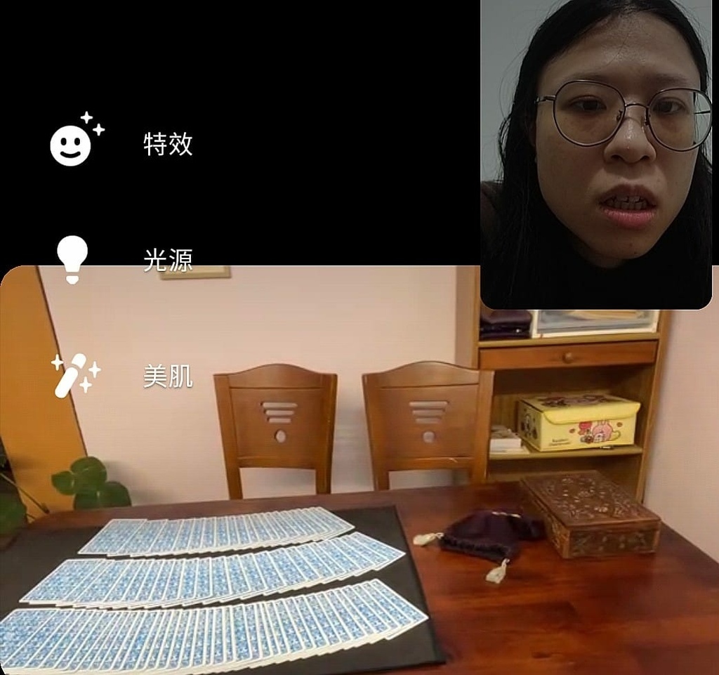 線上塔羅牌諮商論命,首先李老師會諮詢我想要問的問題-工作,還有討論我遇到的困境及職場上的疑惑,並重整手上一疊的塔羅牌,開始排出三排塔羅牌,客人可以自己選擇三張牌,或是委請李老師代抽塔羅牌,算命時我真的非常非常緊張,半小時的諮商時間內就抽了好幾次塔羅牌,李老師會解讀抽到的塔羅牌,李老師建議我可以等到6月再找工作,或是邊繼續做兩種職業餬口邊努力下去,以及需要朋友幫忙介紹工作~~