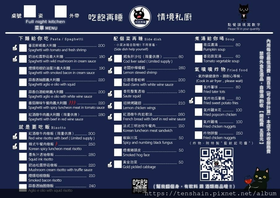 第一次來訪是怕「半夜餓醒絕不好受,吃飽再睡才是王道」,這次再訪進化到「吃飽再睡,好夢相隨」,兩次造訪「吃飽再睡 情境私廚」,都讓我們感到非常滿意!如果你常會錯過正常用餐時間,或是九點過後,還想找一家有美食、有美酒的餐酒館來慰勞自己,別忘了,就在三重三和夜市旁邊,有一家深夜食堂的義式餐廳,老闆已準備好美味道地的義大利麵和燉飯,等著溫暖你寂寞的胃!