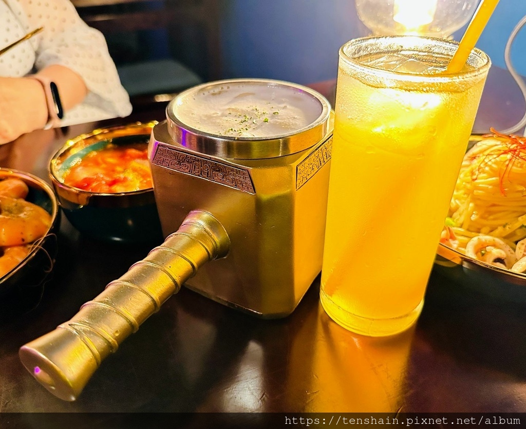 "雷神索爾喝的奶"是以貝禮詩奶酒,搭配咖啡香甜酒,再加一些鮮奶,最後灑上一些巴西里葉來點綴。裝酒的容器就是雷神索爾的槌子,創意和趣味兼具,拍起照來很威風!根據老婆的說法,"雷神索爾喝的奶"因為加入鮮奶的原因,沒有酒精的嗆辣味,喝起來非常順口,就像喝咖啡牛奶一樣,香甜好喝又清涼,讓她忍不住一口接一口喝個不停。
