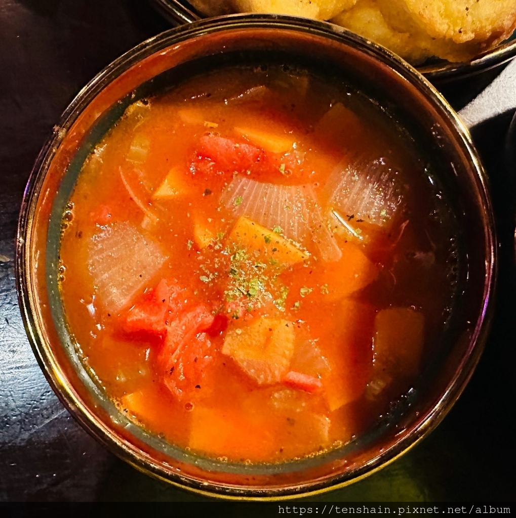 "番茄蔬菜湯"也是我們一試成主顧的湯品,營養又好喝,說什麼也要來一碗。