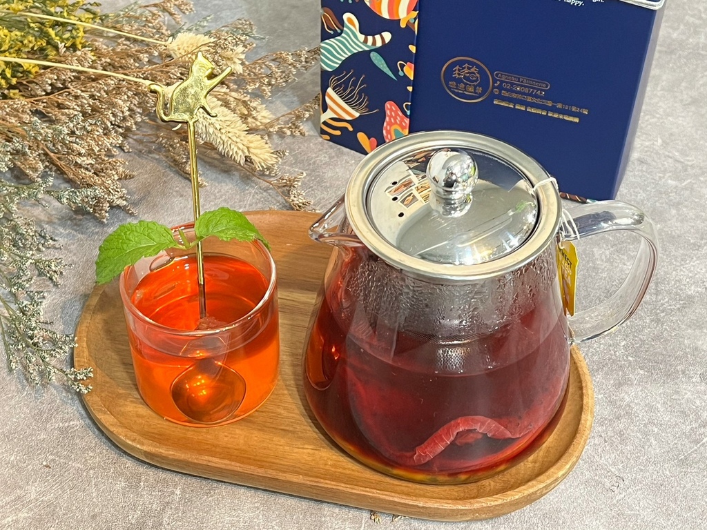 酸酸甜甜的自製水果茶,裡頭的水果都是自己烘乾真空包裝~鳳梨、火龍果、甜橙、蘋果等果乾,配上阿薩姆茶葉蹦出酸甜的特色飲品會依照當季水果做調整,不只滋味好喝,色澤也超夢幻,一口迷途糕羊水果茶,一口新鮮甜點,絕妙組合就是下午茶最佳選擇