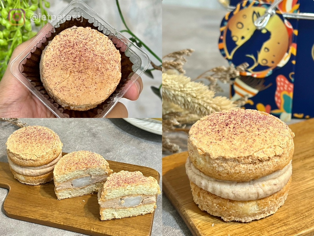 香噴噴的芋泥麻薯達克瓦茲,芋泥濃稠鬆軟,完全就是我的菜,裏頭軟Q的麻糬彈牙口感十足~一大口咬下,達克瓦茲相當有層次感,外酥內軟又Q,相當豐富的層次感,讓人一吃就愛上!