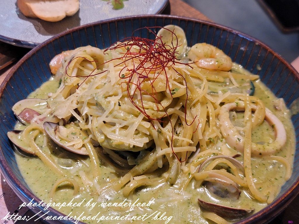 1.羅勒青醬海鮮總匯細扁麵 280元