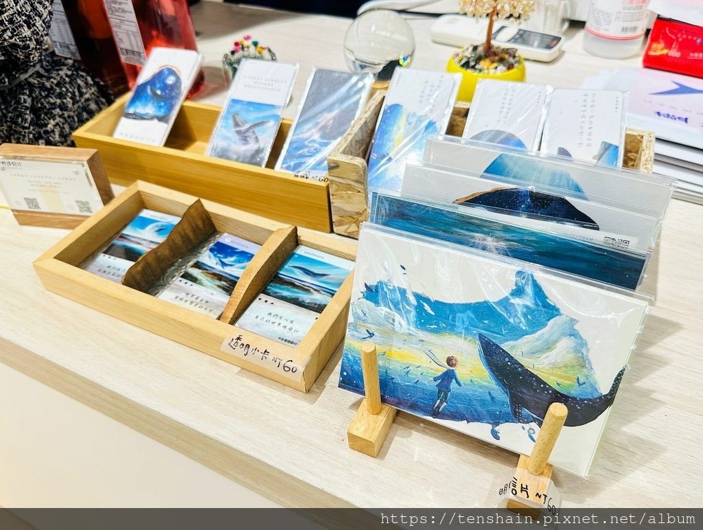 漂亮的壓克力畫,做成縮小版的明信片和透明小卡,就放在櫃台上寄賣,喜歡的話不妨買回家收藏,單價都是 NT$ 60 元。