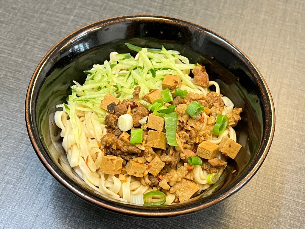 料好實在的炸醬麵,炸醬滿滿的肉燥跟豆乾,充滿豆瓣醬的香味,跟麵條攪拌均勻充滿香氣,麵條相當有彈性~