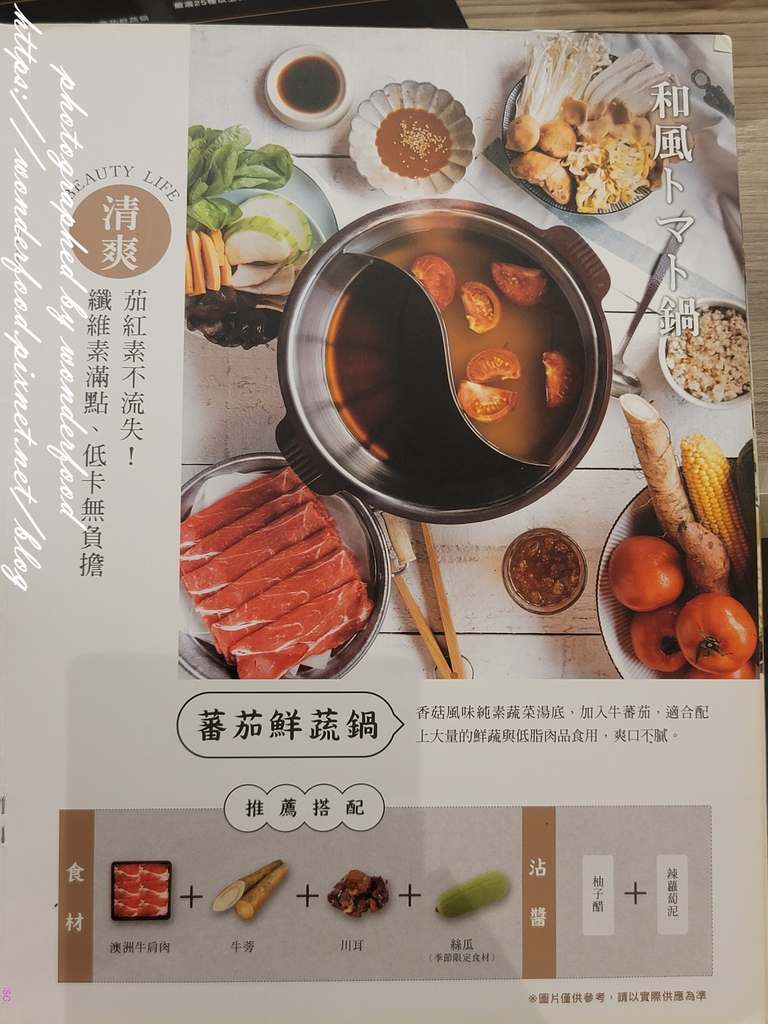 推薦搭配的食材為牛胸肉、春菊、洋蔥和大白菜