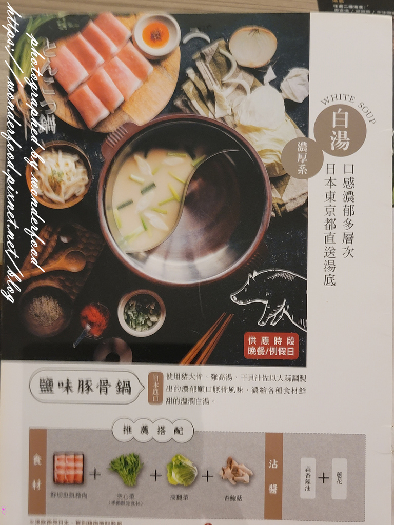 鹽味豚骨鍋只有晚餐和例假日提供