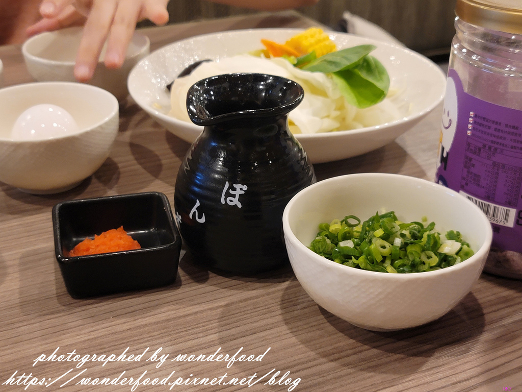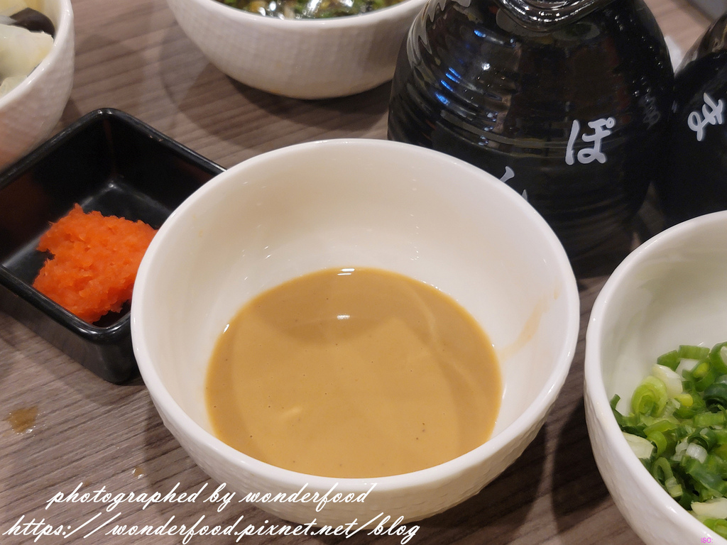 沾醬為柚子醋+辣蘿蔔泥、芝麻醬+蔥花