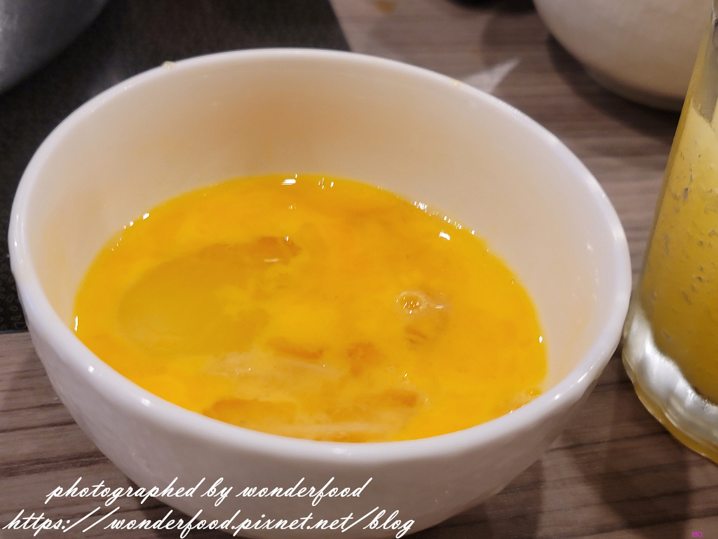 可能是剛涮起來的肉片沾上金黃的蛋液實在太好吃了