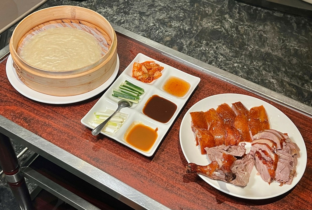 想吃飽一點還要搭配剛出籠的餅皮,超級Q彈有咬勁,包裹片鴨、韓式泡菜、小黃瓜、蔥段及佐料,口感濕潤又爽口,我一不小心就吃了好幾卷,真的好喜歡喔~