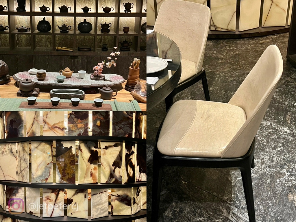3間半開放式的包廂空間,記得要早點預定,嚴選稀有的透光青玉石做屏蔽,採「八」字形排列,光線穿透玉石後綻放出的耀眼光澤相當吸睛,