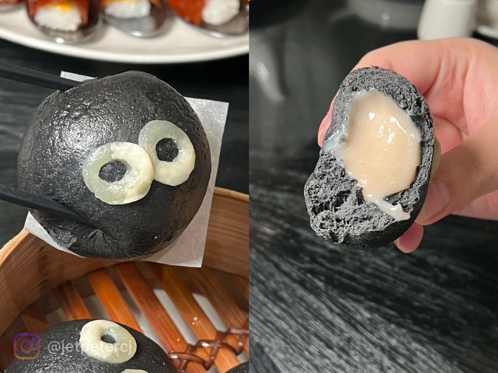 吃完鹹食再來份竹炭流沙包當點心,這個超萌的造型,宛如小黑炭一樣超可愛~包子皮香Q超滿咬勁
