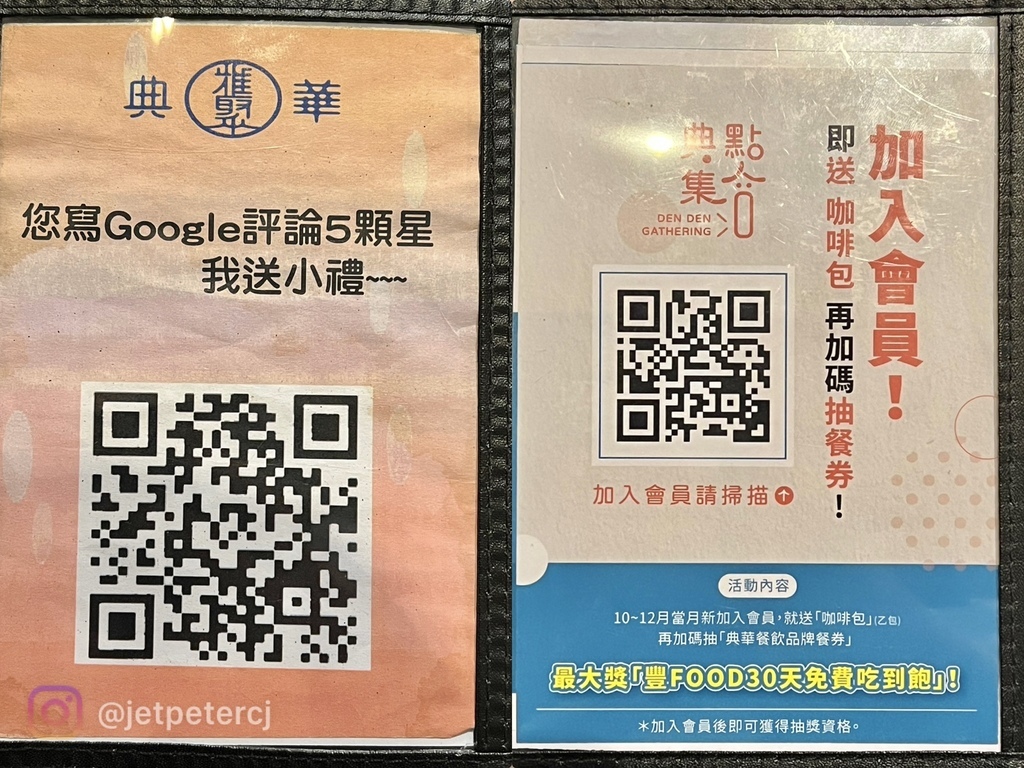 免費加入典華餐飲品牌會員,消費就可累積點數,可兌換各式各樣優惠券及好禮,而且典華旗下各餐飲品牌(豐FOOD、典華雅聚、濤濤海鮮蒸氣鍋)點數皆可通用,可享多項優惠入會禮