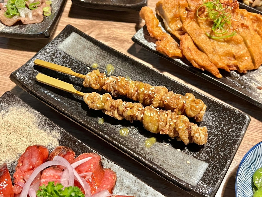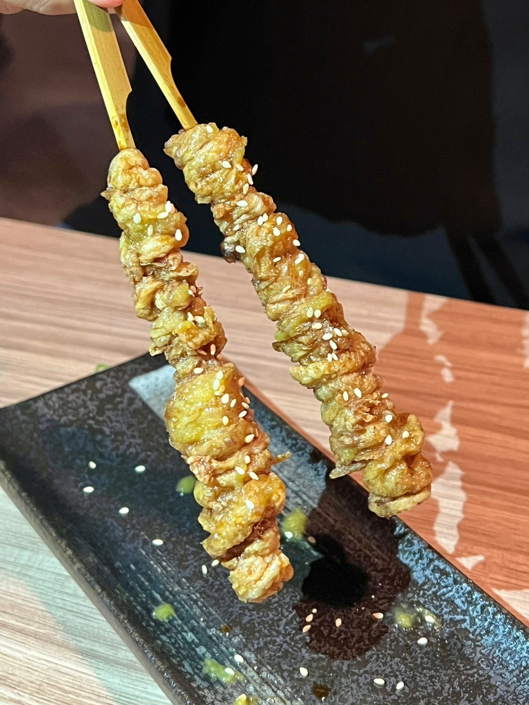 令我念念不忘的多道好料,只要百元的香酥牛蒡甜不辣、卡滋又開胃的柚香雞皮、超有特色的蝦滑手羽先,這次再次回味還是一樣好吃,還嚐了多款好料~