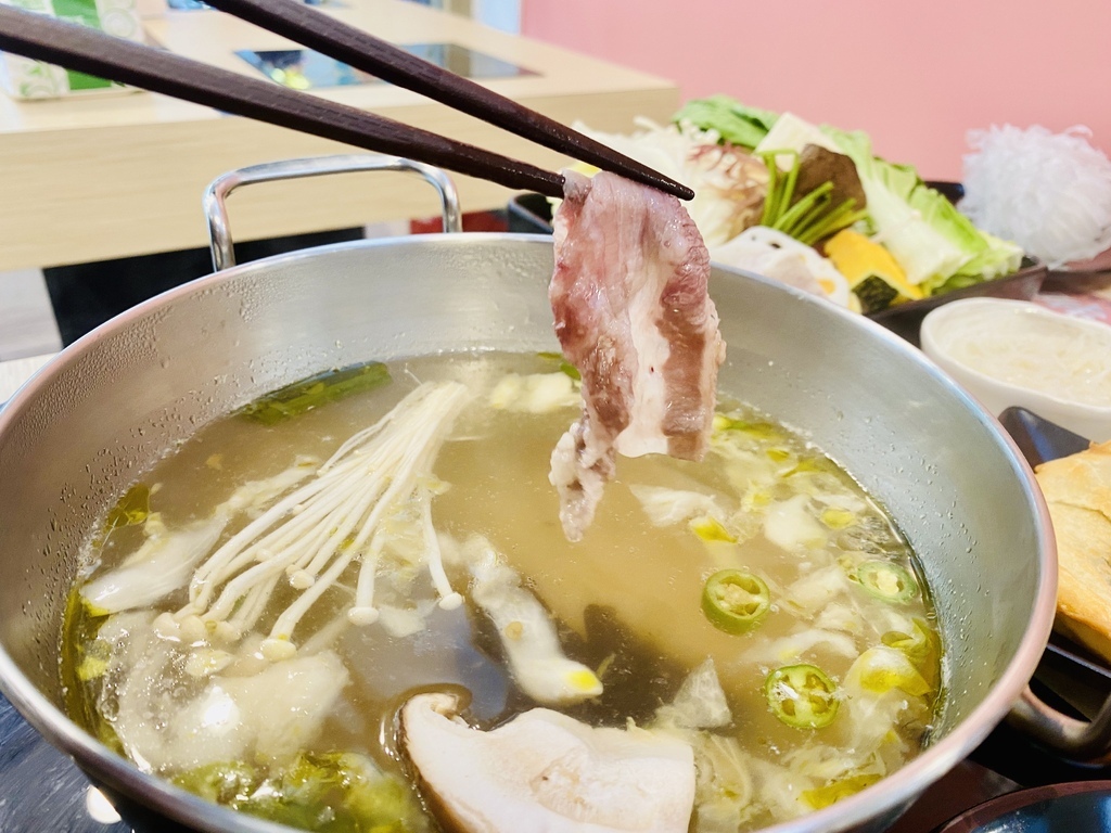 依照菜單上的建議放入酸菜乳酸菌鍋中,