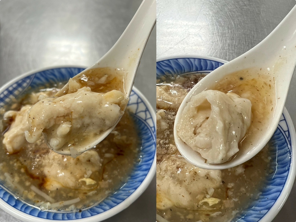 花枝羹吃得到整塊花枝,份量蠻多,一碗好多塊,湯頭調味很好,不會太燙也不會太冷,喝起來相當滿足~