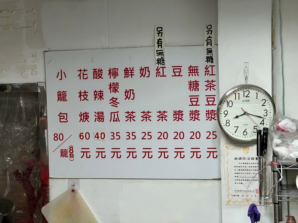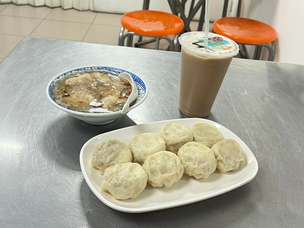 這家的調味剛剛好,沾點辣椒就很夠味,還有無糖的豆漿紅茶,熱騰騰的花枝羹,搭配小籠包都很速配~