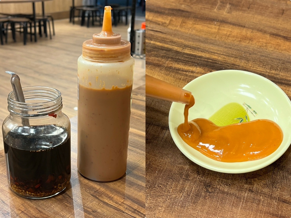 羶村羊肉爐的醬料,帶點香辣,還有點甜度,不論沾配料或拌麵線都很好吃,還有醬油辣椒可以自取