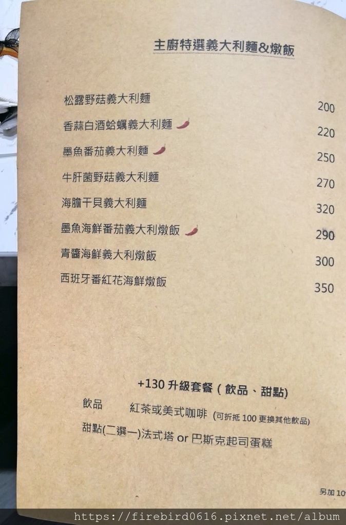 義大利麵價格也很平價,一樣加130元可升級套餐。