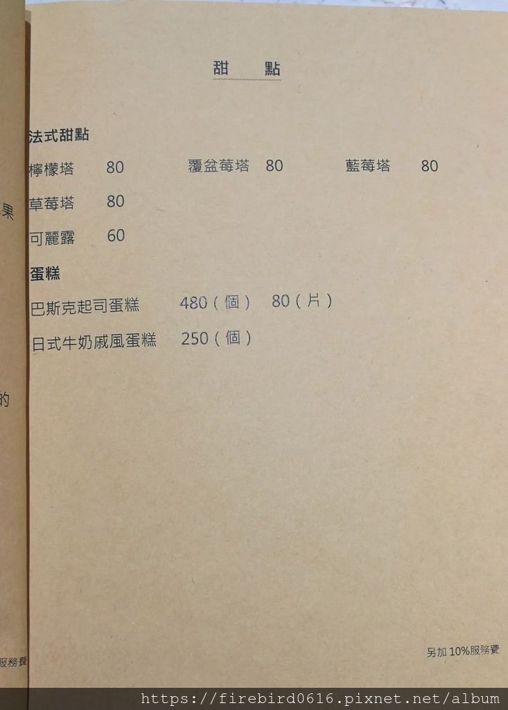 在櫃檯玻璃櫃中,陳列本店的招牌甜點,塔類很便宜,一個只要80元,不過尺吋看起來像是S號,最近很夯的巴斯克起司蛋糕也是本店招牌。