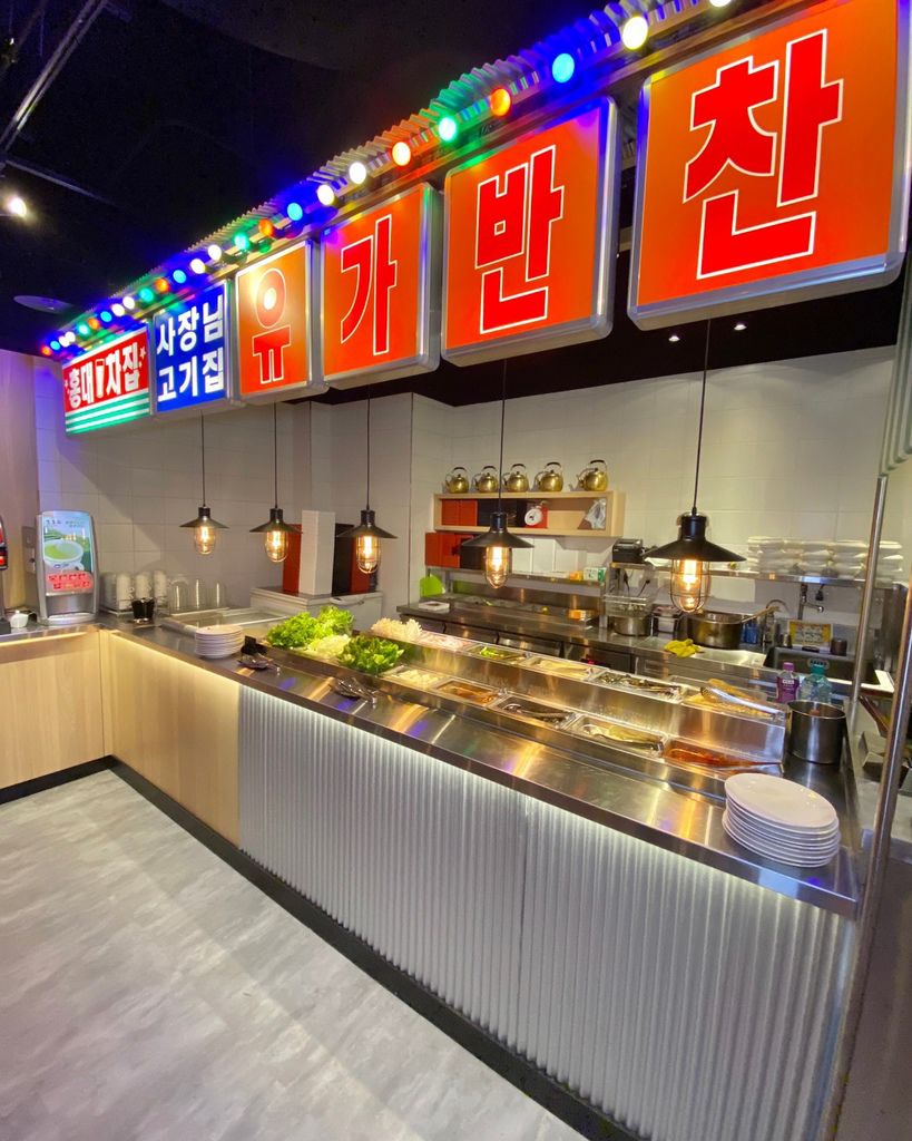 拿菜的吧檯設計成像是韓國傳統菜市場的感覺