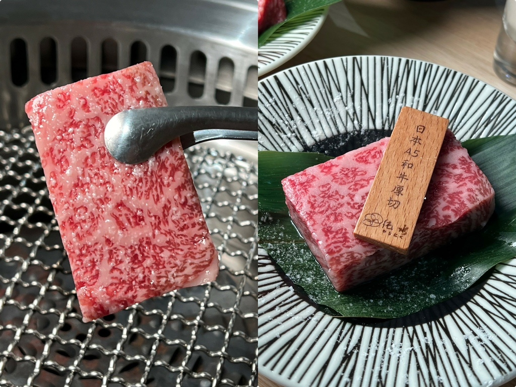 2.首推日本A5和牛大滿足,3種不同刀法的和牛一次吃個夠,我超喜歡牛排的軟嫩口感,牛肉在口中化開,真的太幸福了!單點日本頂級A5和牛厚切牛排,大約有10元硬幣的厚度,一咬下就感受到鮮甜肉汁,真的好幸福!價格比台北便宜,份量卻更多,純水燒肉就是和牛控的天堂