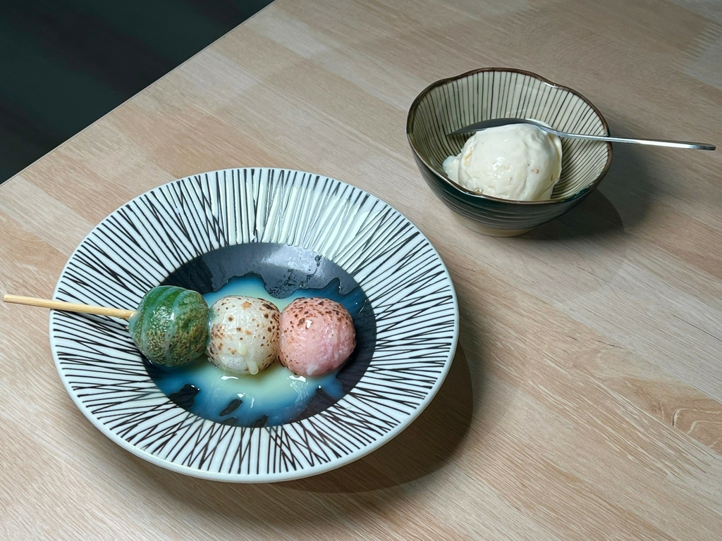 5.吃燒肉還不能少了冰涼飲品及餐後甜點,胡麻冰淇淋creamy口感,吃完燒肉怎麼能少了這一味!三色丸子香噴噴團子🍡擠上煉乳甜蜜蜜好幸福;冠軍烏龍茶選用在地好茶,溫潤茶韻自然回甘;葡萄沙瓦清爽解膩,可以除去口中的食物味。