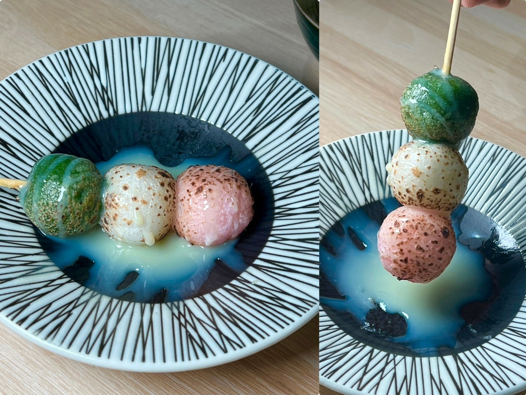 現烤的三色丸子,上頭淋上甜蜜蜜的煉乳,相當有咀嚼感,軟中帶Q一口接一口,吃完還想再來一串