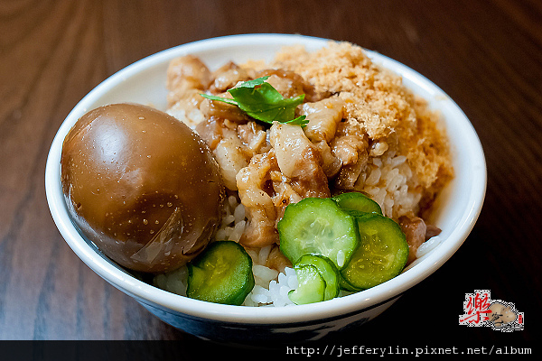 首先上桌的是"魚鬆肉燥飯", (如上圖), 這肉燥飯的肉燥很香, 裡頭採用帶點肥肉的部份, 配上特製魚鬆及醃漬的小黃瓜, 味道很不錯, 能夠讓人一口接一口停不下來喔!