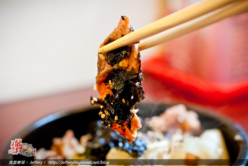 除了"烤肉"這個主角外, 這"韓式烤肉飯"的另一個特點就是滋滋作響, 香噴噴的鍋巴了。老闆利用那鍋子的高溫將裡頭的白飯煎的略帶焦脆, 客人可以一邊吃一邊拌勻, 這樣比較不致於某些部份過焦了。不過樂媽食用過後似乎不習慣裡頭的胡椒味, 而且認為過鹹了點, 算是樂媽對這道餐點的一些意見吧。