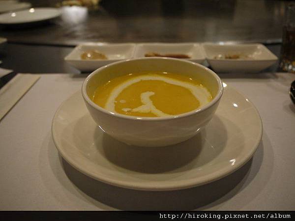 開始出菜,首先是南瓜湯,因為我非常不喜南瓜,所以一開始只是淺嚐小口,結果我整碗喝光,好適口的味道