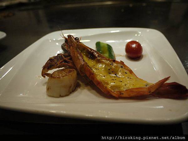 這就是海鮮組合,海大蝦吃起來有點類似龍蝦的口感,佐起司吃起來使兩種食材味道緊密融合,濃郁的起司搭配肥美的大蝦肉質,滋味絕佳 ; 北海道鮮貝,完全沒有海鮮的腥味,吃下去略帶鮮鹹,整個水份鋪滿舌頭,絕對夠新鮮 ; 鯛魚片吃起來外焦內嫩,我對這個海鮮組合印象深刻,而且回味無窮