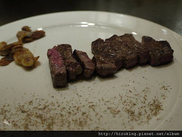 可以看到後面那一塊是肋眼才有的部位,也是俗稱的神戶牛排,吃起來的是彈牙的感覺,真是令人意猶未盡