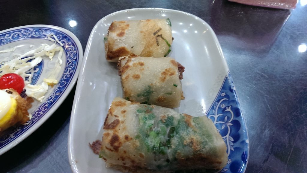 用蔥油餅包著牛腱肉 , 還有生蔥(不過我沒加 , 因為本人不吃蔥)