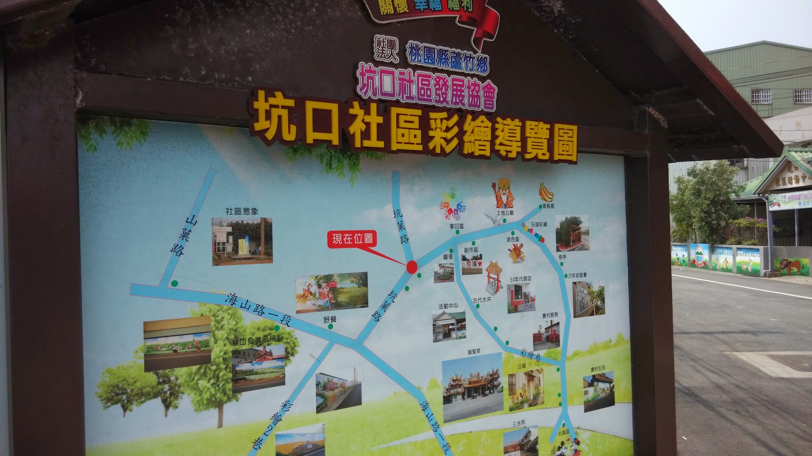 地址:桃園縣蘆竹鄉坑口村16鄰頭前40-2號1.開車:中山高桃園交流道下,台4線接三民路轉坑果路,近108縣道時可抵。2.搭車:桃園火車站搭乘桃園客運5020、5021往海湖、下湖方向班車,至坑口村站下可抵。坑口彩繪村入口坑果路誠聖宮位置 25.091001,121.267792