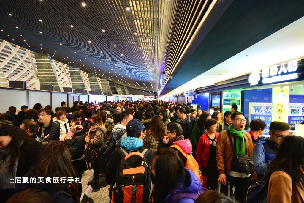 ▲本來以為搭商務艙少排點隊,想不到搭了扶梯上來後人山人海