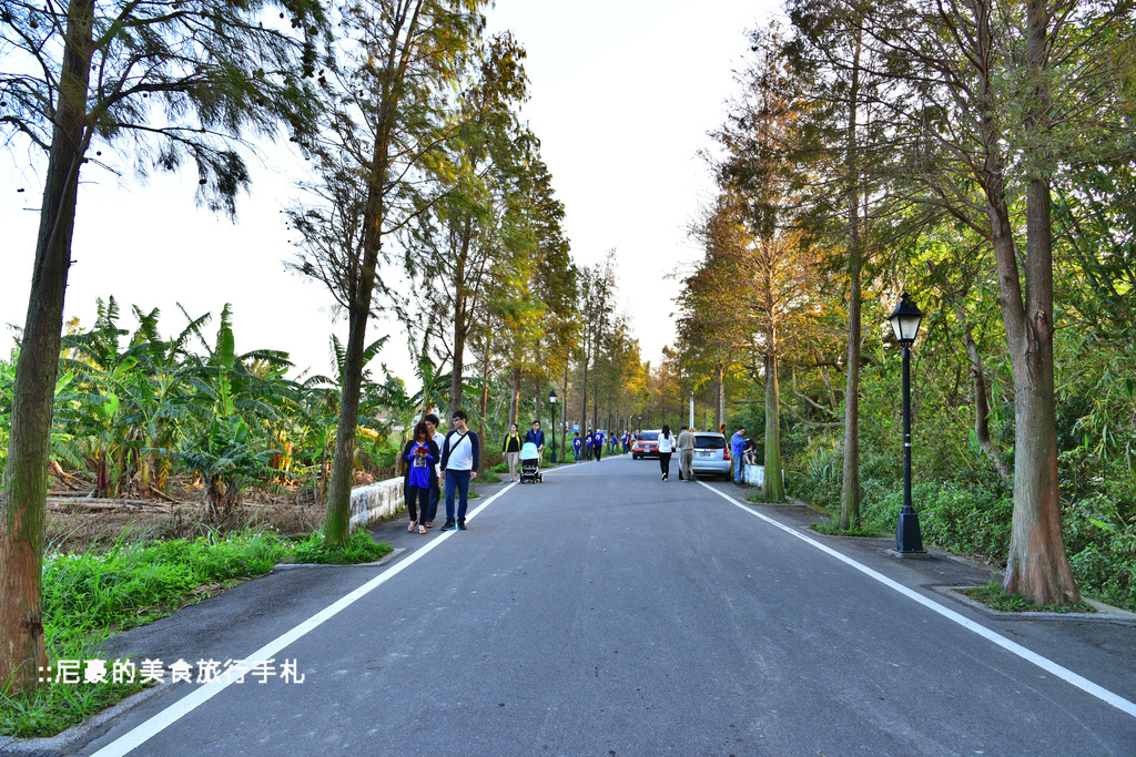 這條路兩旁種滿了都是高高的落羽松,可惜還沒有什麼變色