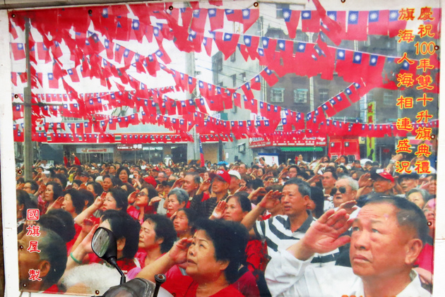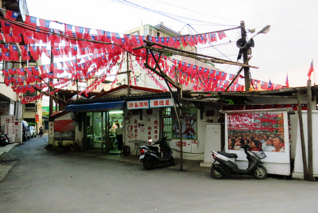 任何時候只要彎進中壢龍岡忠貞市場旁的小路,必定見到〔國旗屋〕的天空總是旗海飄揚。
