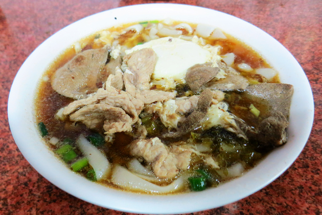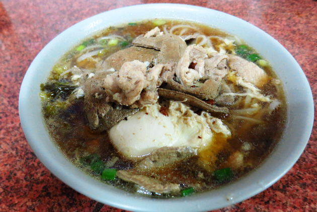 終於來到〔國旗屋〕,我當然要來一碗盛了滿滿豐富好料(蛋、肉片、豬肝)的綜合米干(才55元呢!)