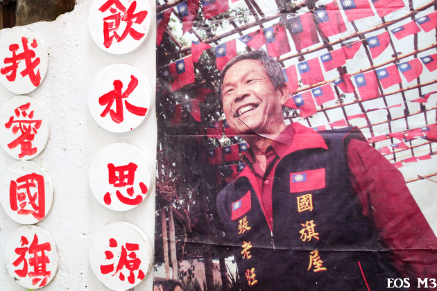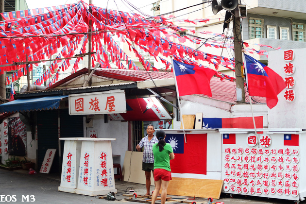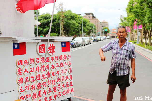 2016年8月,我再訪〔國旗屋〕,恰巧遇見身子依然硬朗的張老旺在店外準備國慶日。