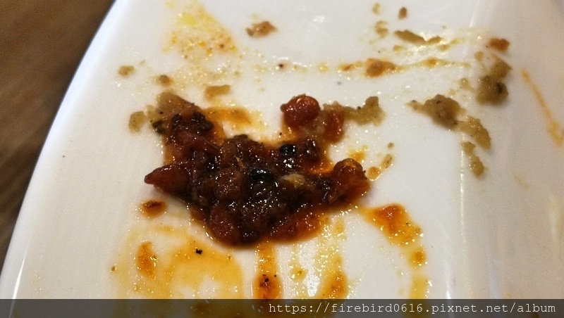 紅醬則是相反,香氣沒那麼濃烈,入口會覺得和香味比一般的純辣椒醬味道還淡(對喔,沒有黑豆豉也沒小魚干),但是後勁強,不過對我而言還是小辣水平。