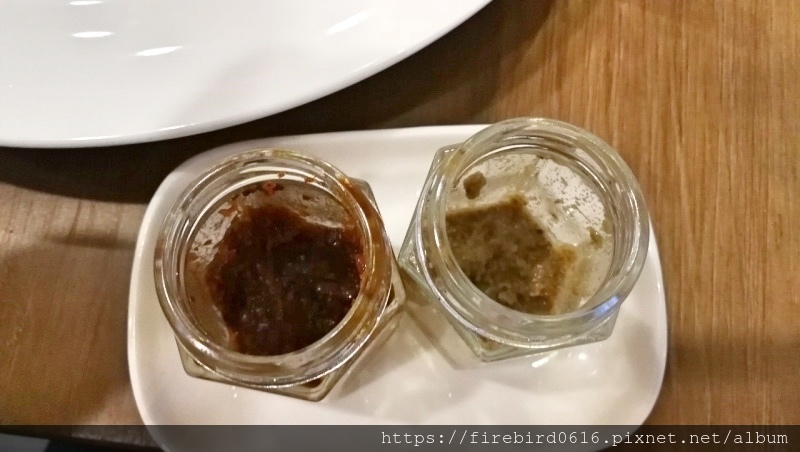 這是等等用餐時會出現的,咖哩青辣醬和咖哩紅辣醬,也是委託台灣工廠生產。