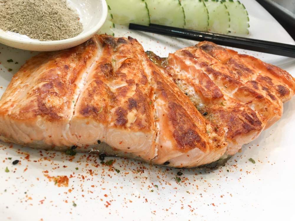 鮭魚切的蠻大又蠻厚的,吃起來很過癮~