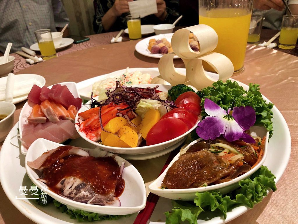 家裡妹妹出嫁挑出的好日子在平日舉行,擇日另舉行的宴客大典 當天的午宴也很不賴,讓前來幫忙得親友們搶先共享喜悅 忙了一上午的好事兒終於告一段落,中午大家前往中壢的儷宴會館 是說自己結婚的婚宴會館也是同一品牌,不過地點在台中 因為喜宴的關係,餐廳有贈送花好月圓 之前吃過的都只是一般炸湯圓,這款的花好月圓是炸有包餡的芋頭圓、番薯圓 頗受同桌長輩們喜歡,小孩也狂嗑好幾個 儷宴會館(中壢環北館) 地址:320桃園市中壢區環北路65號(桃機捷A21環北站旁) 電話:(03)401-0661 官網:https://www.liyuanrt.com.tw/ 日式呈祥福祿盤 涼拌海蜇皮、三色生魚片、蝦仁美乃芝、五味透抽、蟹肉棒佐日式和風生菜沙拉 名字是自己亂取的,感覺很有一回事 第一道冷盤料理除了對蝦仁美奶滋的醬料很多頗有怨念之外,其他的都感覺很實吃(台語) 明爐片皮烤大鴨 看到甜麵醬、青蔥、小黃瓜送上桌就知道烤鴨離自己不遠了 現場專人片皮烤鴨,馬上溜去照一張相 熱騰騰的麵皮香又軟,內心望著塊桌子期望轉快一點才能品嚐暖呼呼的烤鴨 片鴨的技術只能說一般般啦 想到這裡就想起去宜蘭吃的櫻桃鴨大餐,真是懷念! 厚厚的烤鴨配上蔥白與小黃瓜,淋上甜麵醬 哈哈,一口塞到嘴裡真的超美味,鴨肉不柴,鴨肉有點多的狀態需要多咬幾下 御醬皇炒海中寶 我自己很喜歡吃海蜇皮、透抽、花枝這類的食材,對我來講很下飯 拌炒的香菇也很鮮甜,印象中好像有些許的干貝 經典生菜鴨鬆包 上菜的時候喵了一眼以為是老菜色生菜蝦鬆,結果還是長輩別提起才注意到 這道菜的主角是鴨鬆,真的不是蝦鬆耶 這道好吃,沒吃完都打包帶走 鴨肉炒的不油膩,配上美生菜提升了口感與清爽程度 剛剛前面幾道重口味的料理也在這裡做了口味上的轉換 蒜蓉焗鮮海大蝦 好吃的大蝦不乾澀,胖胖的粿條吸滿湯汁很有味道,是很道地的台菜 不過南北大不同,中午以南的好像粿條會換成板條或寬冬粉的樣子,但一樣好吃 蒲燒魚鑲糯米飯 這道菜也是讓大家都滿意也一掃而光的菜色 糯米飯軟而不爛,蒲燒鯛魚的口味更是讓這道加分 脆蔥海味蒸石斑 好吃的鮮魚自然不會放過,整盤吃光光 蠔皇杏菇扒烏參 大家很注重養生,這道菜裡的青江菜比烏參受歡迎 自己蠻喜歡菜裡的杏鮑菇,咬起來彈牙又多汁 烏參吃一兩塊可以,吃太多感覺很恐怖 不知為什麼一直覺得烏參是一種很詭異的生物,哈哈哈 冬蟲夏草燉烏雞 雞湯不用說擄獲大家的心,湯好雞軟嫩,一下子就見底了 圓籠手做海鮮餃 皮薄不過乾、內餡肉包蝦仁,沾一點醋更好吃 瑞士捲 聽老妹講的招待瑞士捲,招待就吃吧! 海綿麵包不乾、也不會過於失軟,內夾的奶油餡也不會太甜,頗受長輩喜歡 寶島四季鮮果集 用餐時節是10月份,盤中的三樣水果都甜滋滋的,一下就掃光 顯示大家今天都餓了吼XDDD 恭喜老妹結婚了,雖然正宴還沒到來 慰勞大家的午餐饗宴,兩位新人拿出了好大的誠意招待大家用餐,讓大家吃得好飽也好開心 這次的訂餐內容屬於小桌數一般廂房菜色服務內容,席間果汁提供無限暢飲 儷宴也提供一個完整的場地與背板空間讓新人拍照使用,其實是平常日中午沒人啦XDDDD 這次記錄得很簡單,純菜色分享 等著12月吃正宴呢,怎麼比自己結婚時還認真(托腮) 本文同步發表於:【桃園/中壢】儷宴會館(環北館)平日午宴菜色(圖多)、果汁無限暢飲