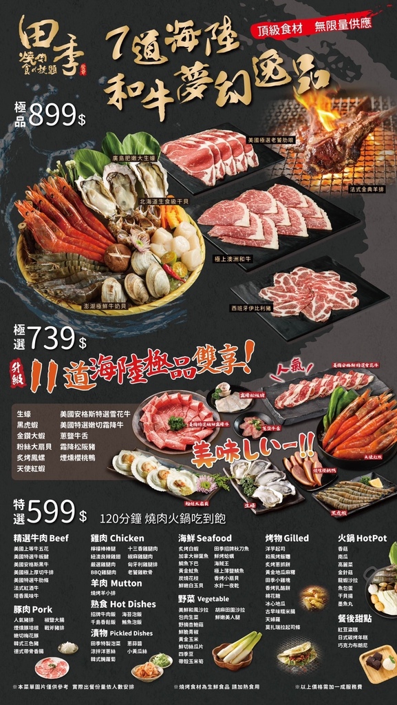 本文同步發表於:【桃園市 桃園區/桃園火車站】田季發爺燒肉-燒肉火鍋吃到飽,精緻肉品和豪華海鮮大口吃下超滿足