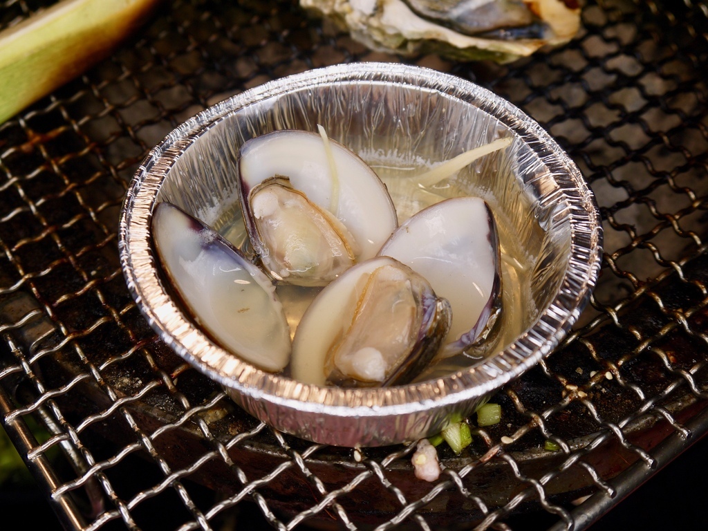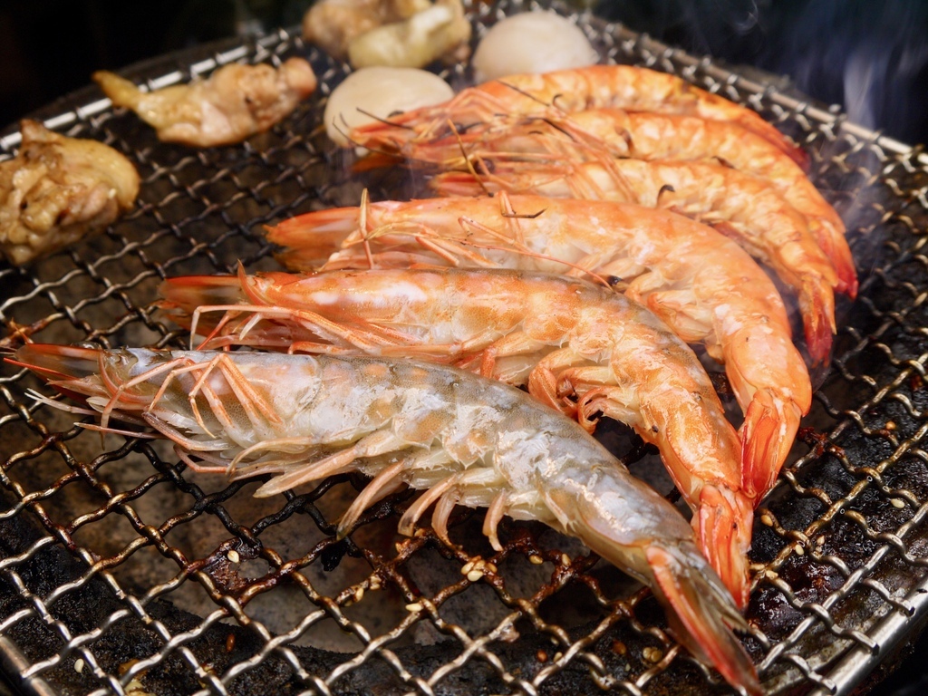 北海道生食級干貝、鮮烤蛤蜊、黑虎蝦和金鑽大蝦,