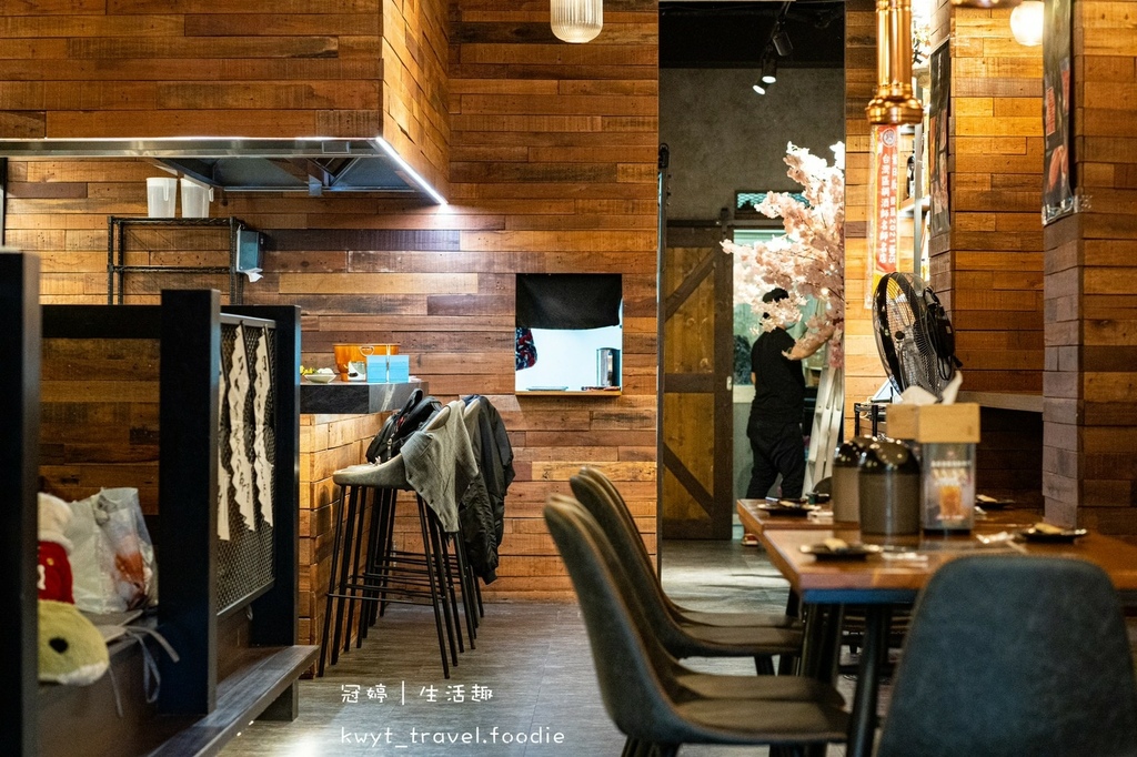 用餐座位以四人桌為主,另有搖滾區,可在吧檯桌用餐,觀賞職人炭烤SHOW。